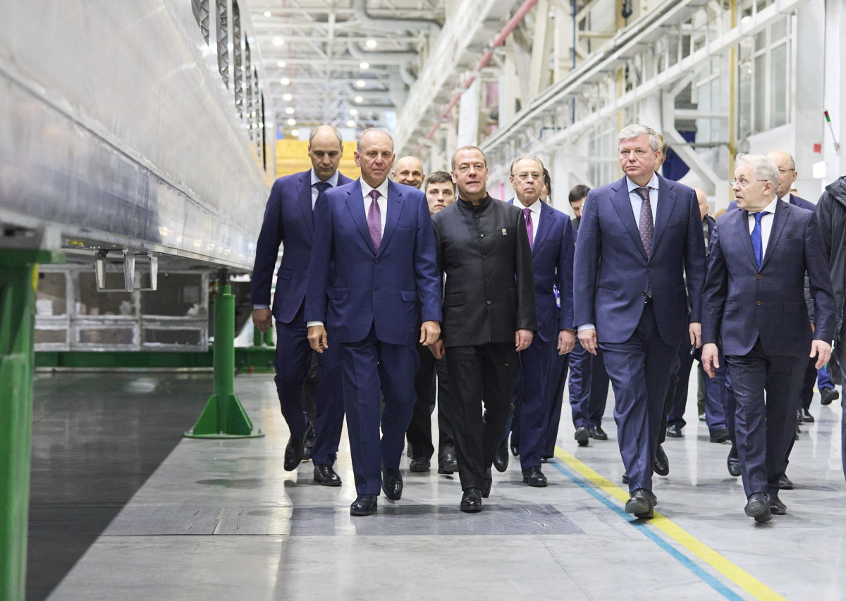В действующем производстве поездов «Уральских локомотивов» Дмитрию Медведеву представили сваренные кузова головного моторного и второго немоторного вагонов первого российского электропоезда для ВСМ. Сейчас на унифицированных сборочных стендах на предприятии завершается сборка-сварка кузовов вагонов № 7 и № 8. После кузова передадут в покрасочное производство для абразивоструйной очистки и окрашивания. На испытания головные образцы поезда для ВСМ отправятся в 2027 году.